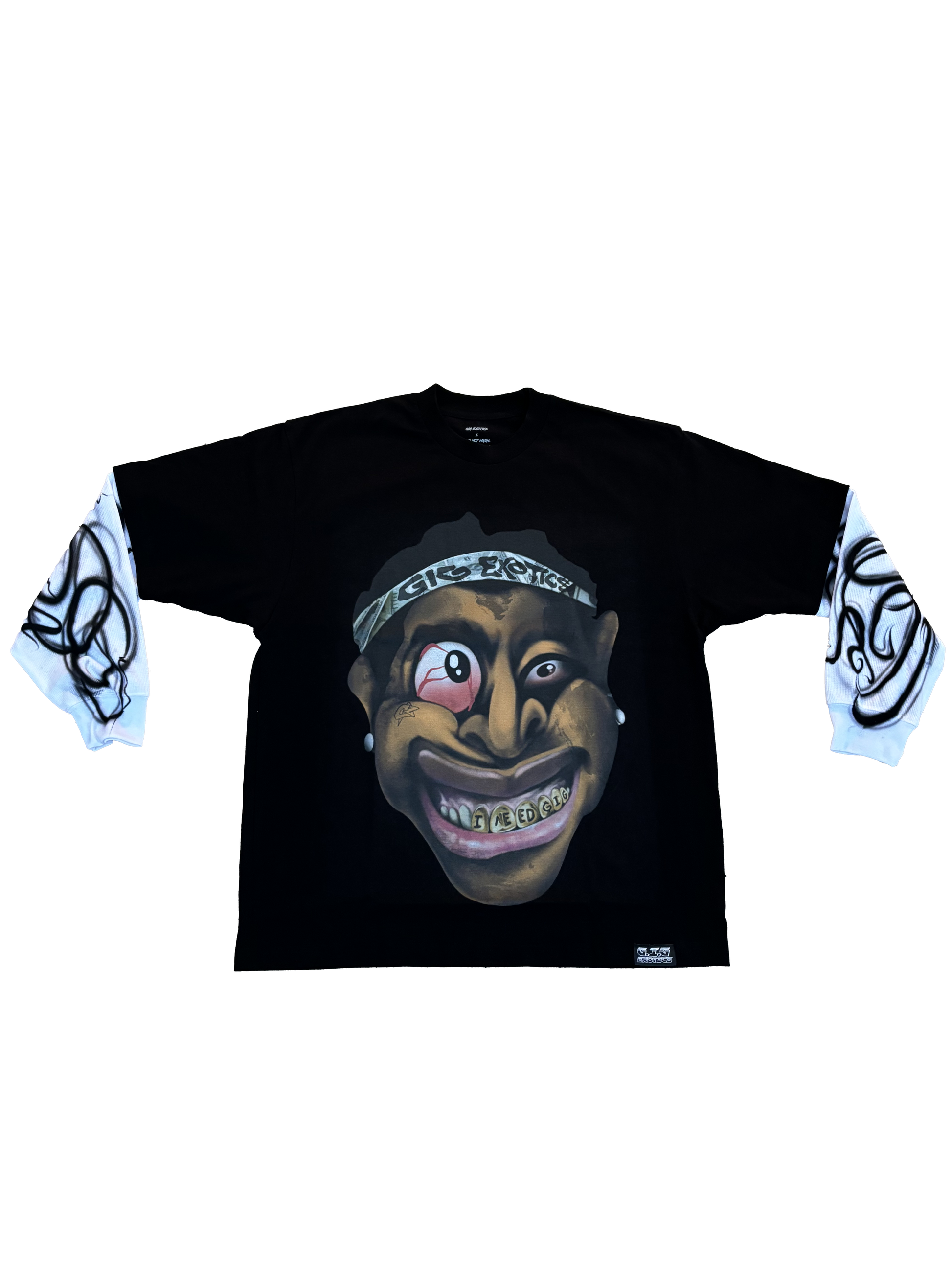 I NEED GIG SCREEN PRINTED GRAPHIC ON FRONT. THERMAL LONG SLEEVE, DEE COSEY AIRBRUSH DETAILING ON SLEEVES.